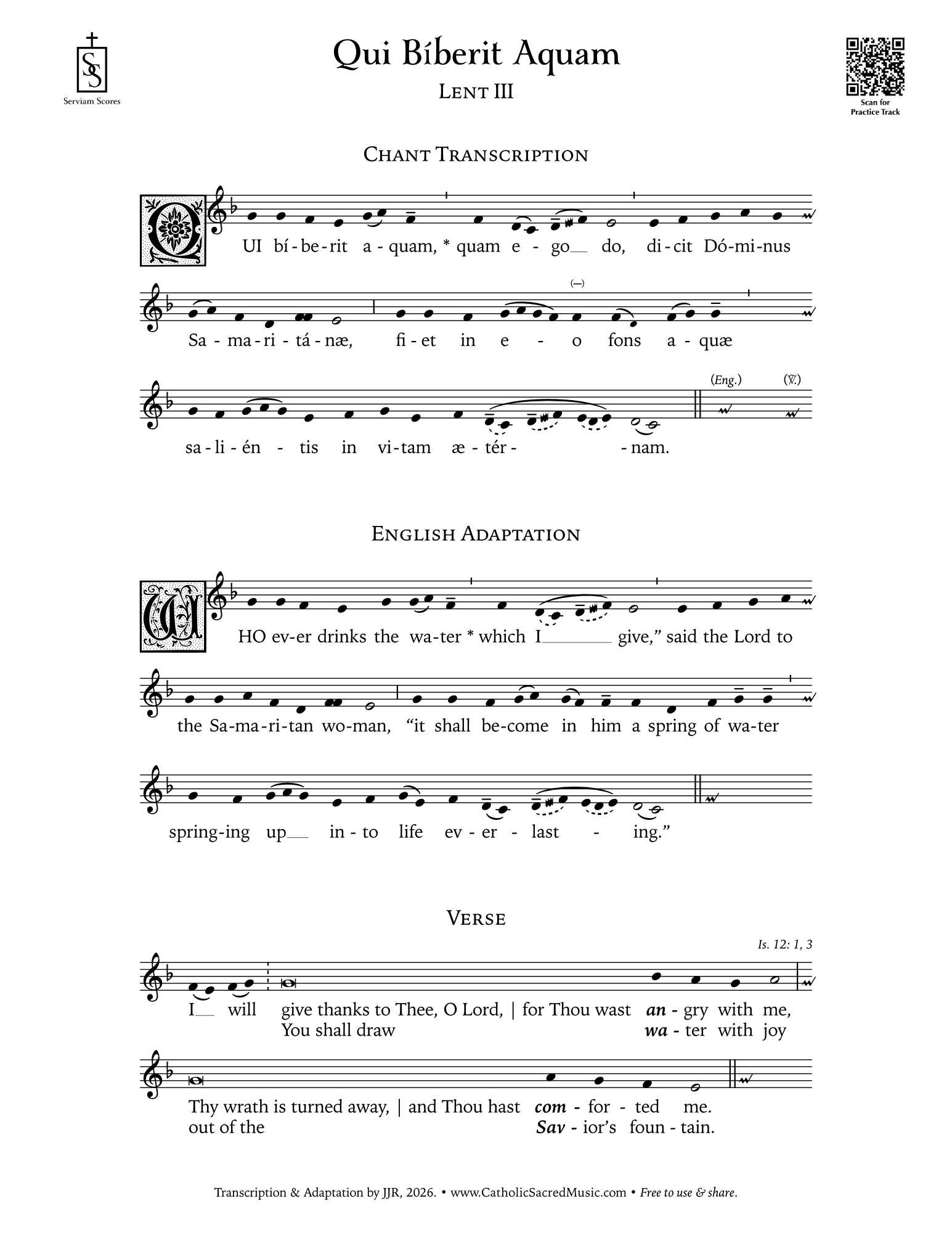 FREE TRANSCRIPTION: Qui Biberit Aquam